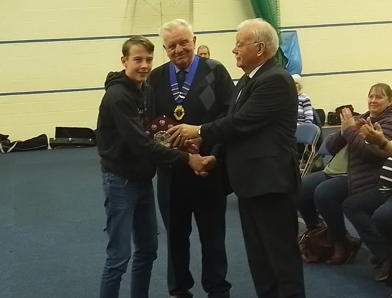 The annual presentation of The Mervyn Sweet Memorial Shield for the best under 18 musician over the weekend was awarded to 14 year old George Watts, Principal Cornet of Bideford Town Band. The award was presented to George by Mr Mervyn Way of M Way & Son Transport, the event’s main sponsor.