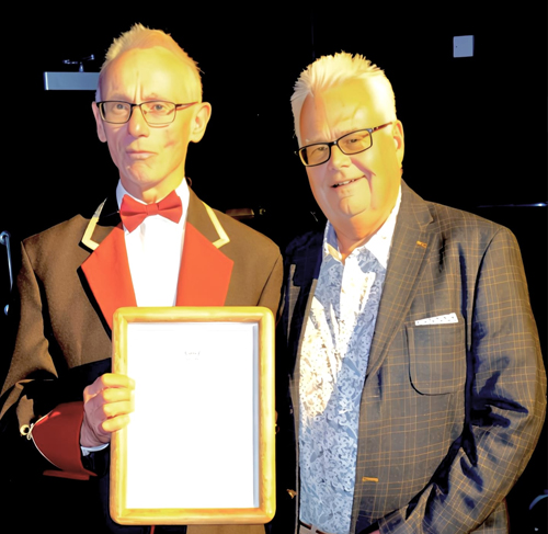 During their recent concert featuring “The Greatest Storytellers” at the Blakehay Theatre a member of Weston Brass was awarded a spotlight on service -50 years dedication to band and community by the South West Brass Band Association. John Woods on behalf of the association attended and presented Dave with the certificate and spoke of the associations work, and the contribution to Weston Brass by Dave.