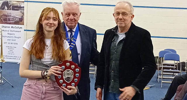 The annual presentation of The Mervyn Sweet Memorial Shield for the best under 18 musician over the weekend was awarded to 14 year old George Watts, Principal Cornet of Bideford Town Band. The award was presented to George by Mr Mervyn Way of M Way & Son Transport, the event’s main sponsor.